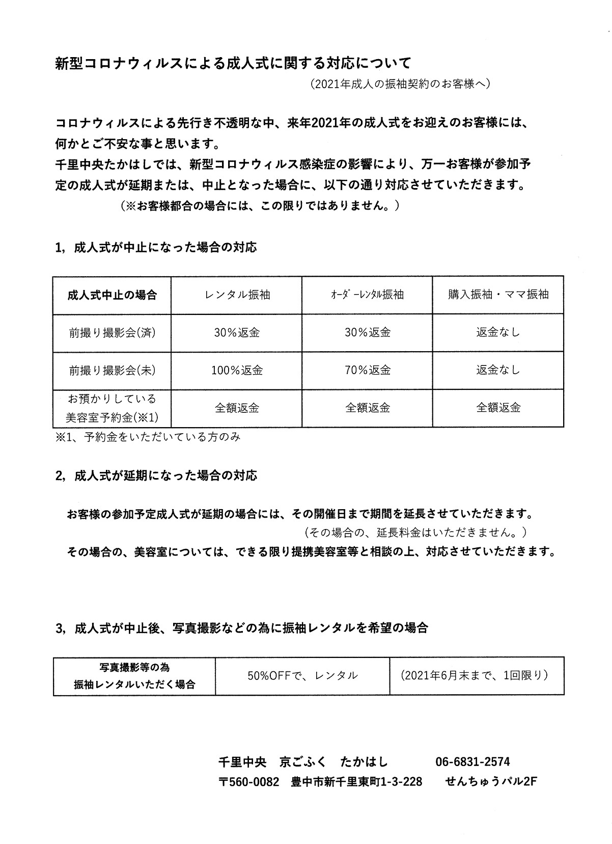 千里中央 たかはしでは、来年成人を迎える方の